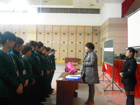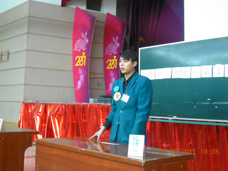 實(shí)操開始了,大家非常有信心的向各位評(píng)委及同事做著自我介紹。
