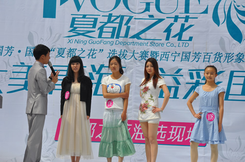 倍受關(guān)注的2012國(guó)芳百貨•國(guó)際“夏都之花”旅游形象推廣大使暨西寧國(guó)芳百貨形象代言人選拔大賽初賽將于2012年6月9號(hào)、10號(hào)下午2:30分在國(guó)芳百貨拉開帷幕。繼之前成功舉辦的為期兩天的海選活動(dòng),將近兩百多名參賽選手中成功入闈80名佳麗進(jìn)入初賽。