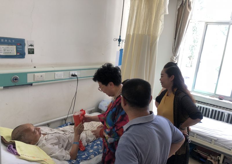 “這是公司的一點(diǎn)心意,希望能幫助你們度過難關(guān)…”6月28日下午,甘肅國芳工貿(mào)(集團(tuán))股份有限公司董事會(huì)董事、財(cái)務(wù)總監(jiān)兼工會(huì)主席,人力資源總監(jiān)以及黨委常務(wù)副書記一行人驅(qū)車趕往蘭州大學(xué)第一醫(yī)院東崗院區(qū),慰問公司患病職工閆世忠,并代表公司送上愛心捐款50000元,令閆世忠及其家人備受感動(dòng)和鼓舞。