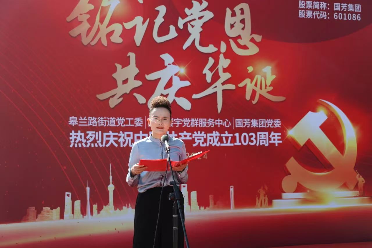 為慶祝偉大的中國共產(chǎn)黨建黨103周年,進(jìn)一步貫徹落實黨的二十大精神和習(xí)近平總書記關(guān)于黨紀(jì)條例學(xué)習(xí)教育的重要講話和指示精神,豐富黨員和員工文化生活,在七一建黨節(jié)即將來臨之際,國芳集團(tuán)黨委協(xié)同皋蘭路街道黨工委、國芳樓宇黨群服務(wù)中心入駐企業(yè)黨組織共同舉辦“銘記黨恩、共慶華誕”慶祝中國共產(chǎn)黨建黨103周年主題黨日活動。